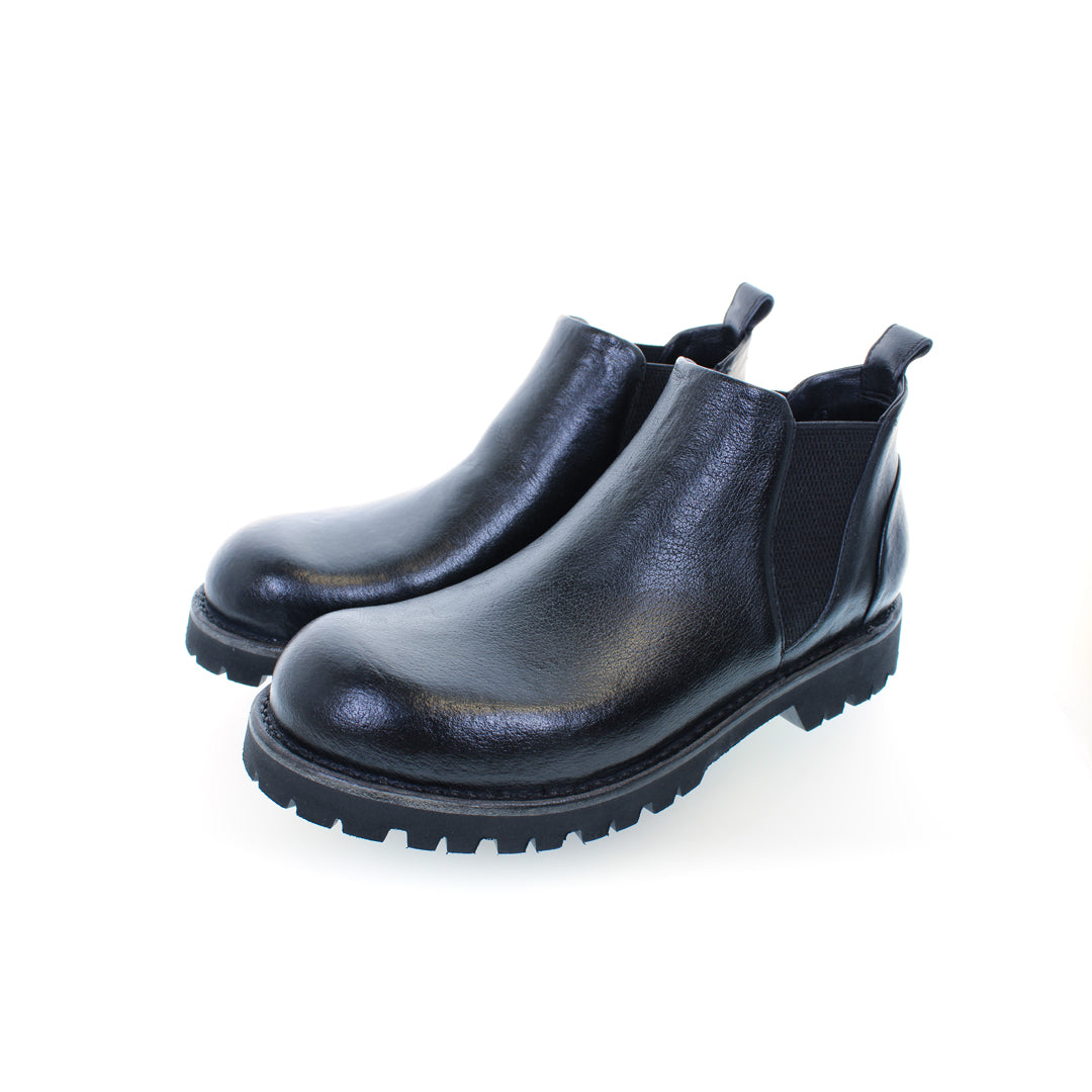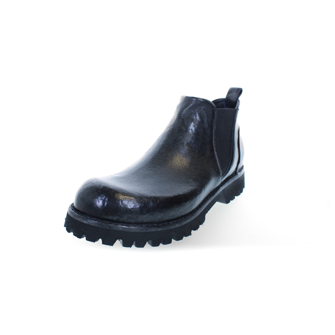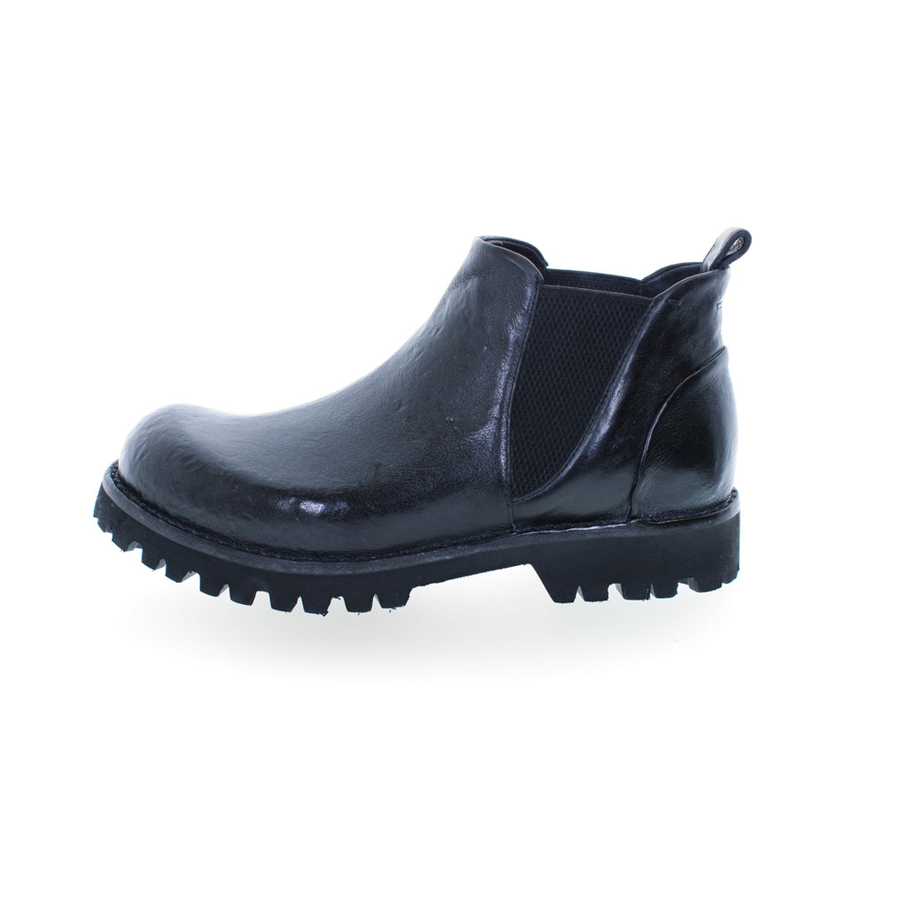 An elegant ankle boot, handcrafted in Italy. Made from premium, vegetable-tanned buffalo leather, treated with a stonewashed effect and hand-polished, this model represents the pinnacle of craftsmanship. This boot exudes personality and uniqueness, perfect for those who love to stand out.